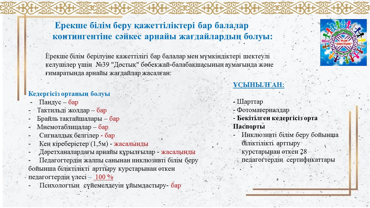 | 4 | ерекше қажеттілігі бар жағдай жасау | ![]() |