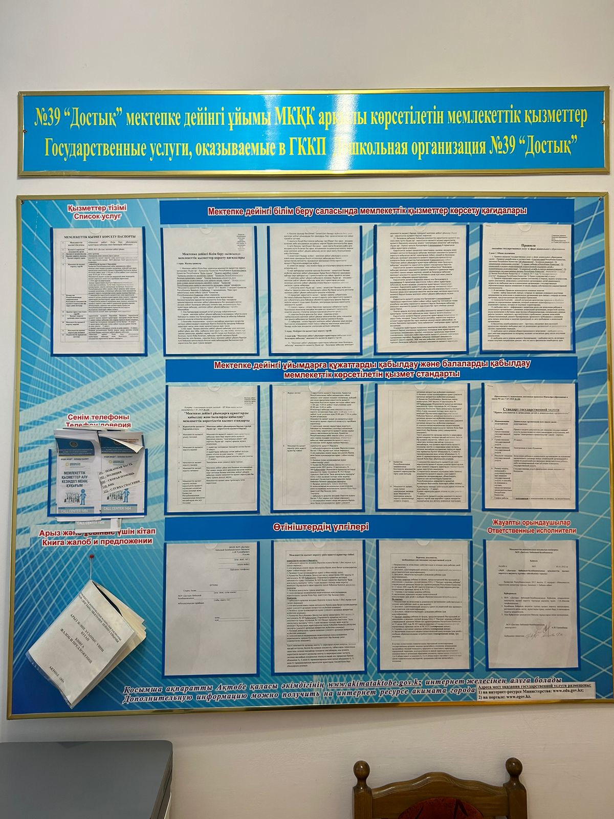 «Ақтөбе қаласының білім бөлімі» ММ МКҚК № 39 «Достық» бөбекжай-балабақшасының Мемлекеттік қызметтер көрсету сапасын анықтау мақсатында 2024 жылдың 12-15 қаңтар аралығында Ақтөбе облысы әкімінің аппараты мемлекеттік көрсетілетін қызметтердің сапасын бақылау және мониторингілеу бөлімінің бас маманы - Каламгазин Азамат Бауыржанович бақылау іс-шараларын жүргізді.