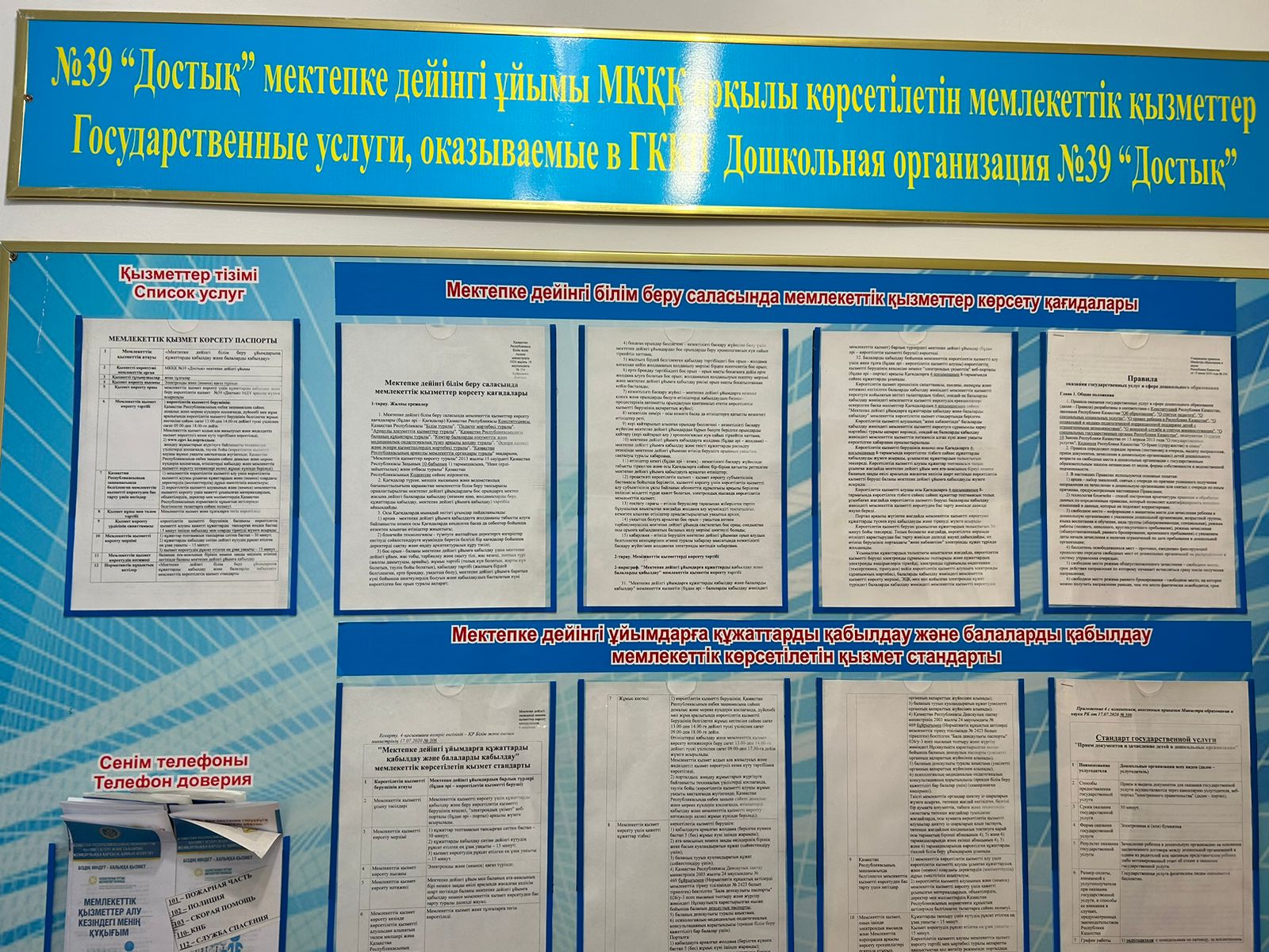 Балабақшамен көрсетілетін қызметті алушыларға мемлекеттік қызметтер көрсету тәртібі толық және ақпаратты ұсыну тәртібі сақталған. Балабақшамен мемлекеттік көрсету барысында «es.iac.kz» ақпараттық жүйесі пайдаланады. Ішкі бақылау барысында балабақшада көрсетілген Мемлекеттік қызмет көрсету мерзімдерін бұзу жөнінде фактілер анықталмады. Көрсетілген қызметті алушылардан шағымдар түспеген. Мемлекеттік бақылау қағидаларына сәйкес балабақшамен есептілік ақпарат берілген. 2023 жылғы Мемлекеттік қызметтер көрсету бойынша 144 қызмет көрсетілді. «Мемлекеттік қызметтер көрсету туралы» Заңы және мемлекеттік көрсетілітін қызметтер қағидалары талаптарын басшылыққа ала отырып, қызмет көрсету мерзімдерін бақылауда ұстау ұсынылды.