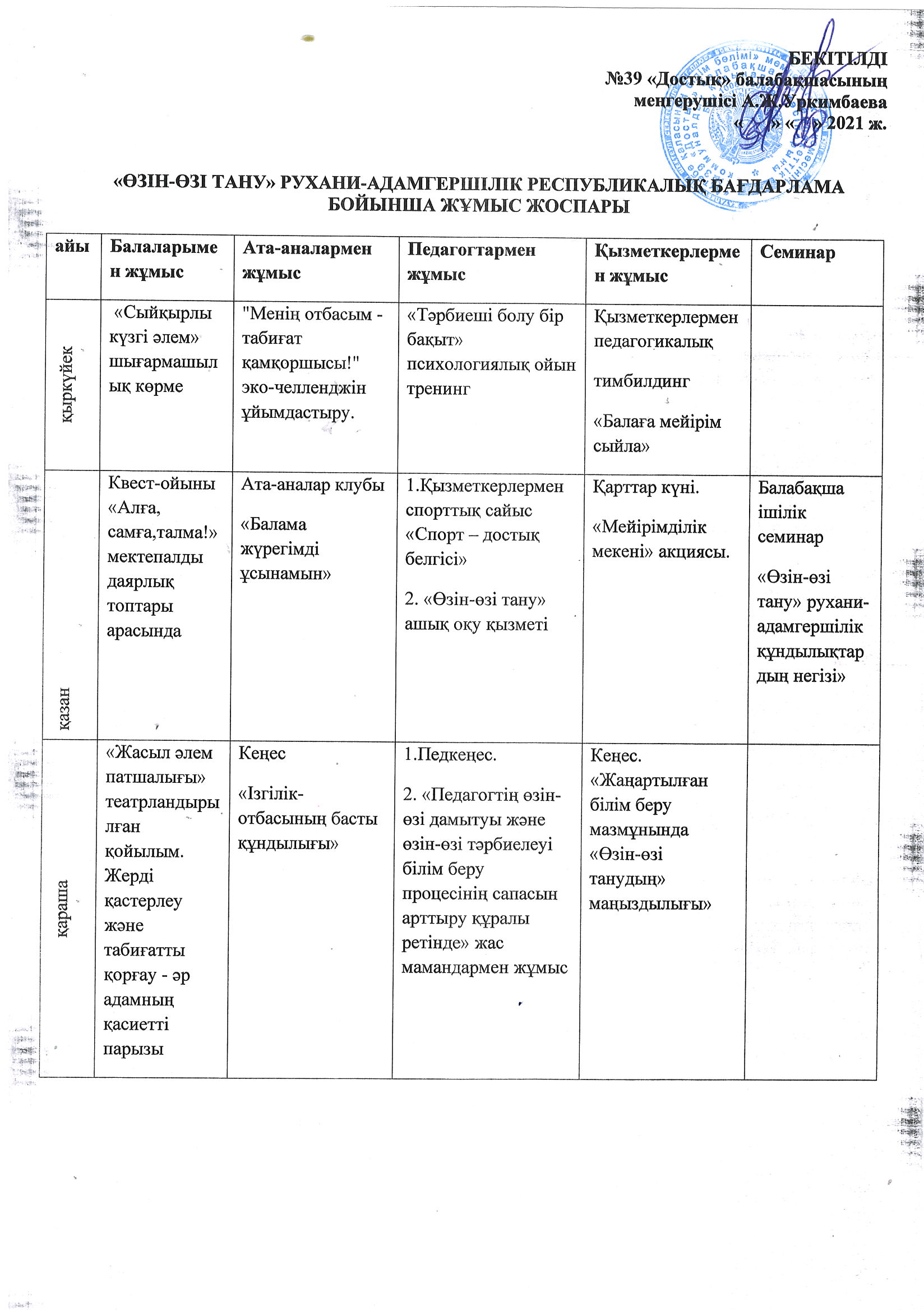 Штаттық кесте 2020-2021